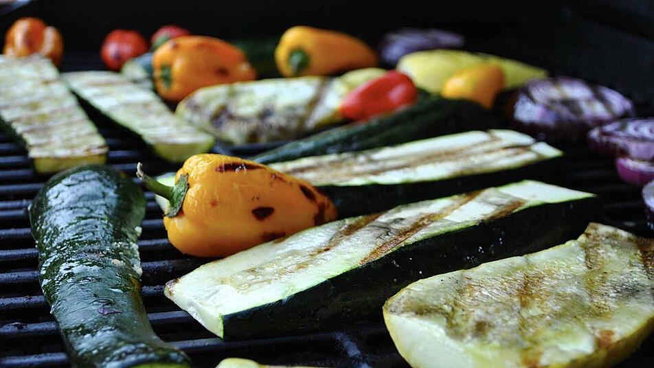 - Das Gemüse auf den Grillrost legen und bei mäßiger Hitze braten. Rosmarinzweige mit auf den Rost legen.