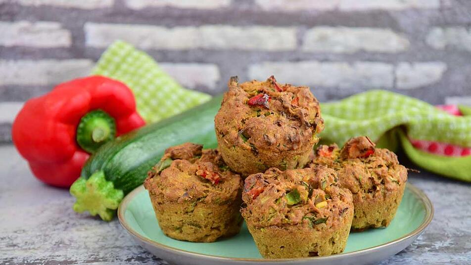 - Das Mehl zusammen mit dem Backpulver und Salz in einer Rührschüssel vermengen. Das Ei, die saure Sahne, Olivenöl und den Parmesan hinzugeben und alles miteinander vermischen. Dann die Paprika und die Zucchini unterheben.