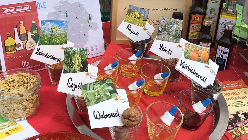 Essig und Öl müssen nicht immer von weit herkommen, vor allem wenn vor der eigenen Haustür so viele heimische Varianten darauf warten, entdeckt zu werden. Hochwertige Öle können nämlich mitnichten nur aus Oliven, sondern auch aus Nüssen, Samen und regionalen Pflanzen gewonnen werden. Und diese Öle sind, dank ihres hohen Gehalts an ungesättigten Fettsäuren, auch noch richtig gesund! In unserer Region wird nämlich meist mit der schonendsten Methode der Ölgewinnung gearbeitet: Unsere Öle werden kaltgepresst, wodurch besonders viele Vitamine und Nährstoffe erhalten bleiben. Auch bei der Essigherstellung sind regionale Produkte eine leckere Basis: Ob fränkisches Streuobst, Beeren, Wein, Gemüse oder Kräuter – die Möglichkeiten sind nahezu unbegrenzt.