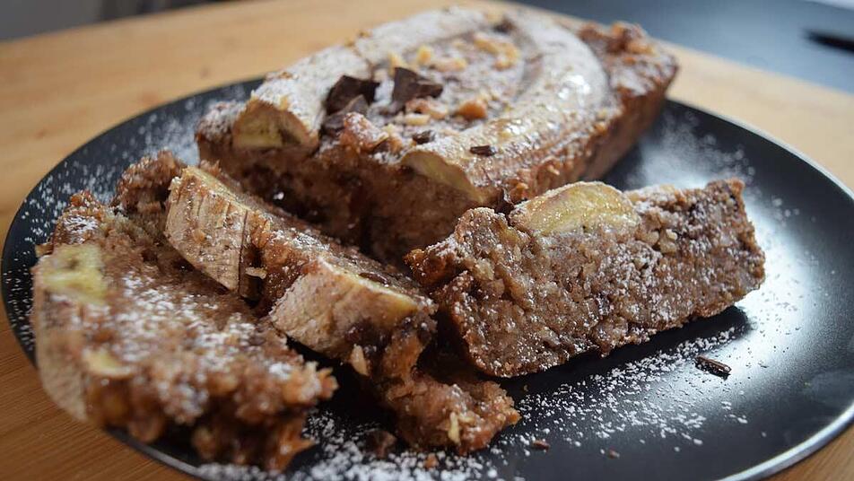 - Das fertige Bananen-Brot abkühlen lassen. Anschließend kann es aus der Form genommen und noch beliebig verziert werden.
