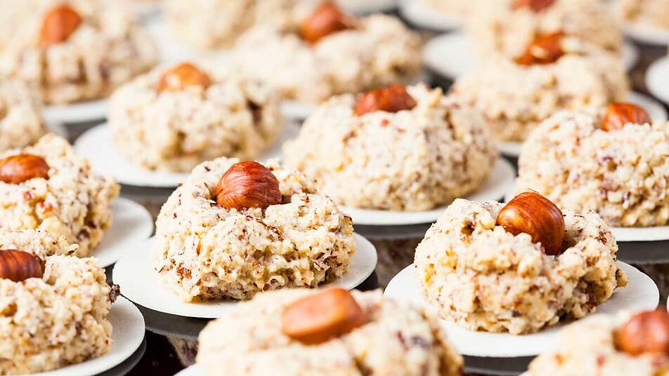 - Die abgekühlten Haselnussmakronen auf einem Teller anrichten oder in einer Keksdose aufbewahren.