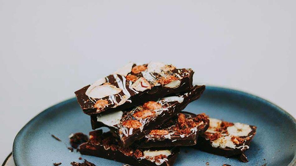 - Und nun wird es kreativ: Verteile deine Lieblingszutaten auf der Schokoladenschicht und drücke diese leicht an. Dabei sind den Kombinationen keine Grenzen gesetzt. Mit Honig und Meersalz kannst du der Schokolade einen ganz besonderen Geschmack verleihen.