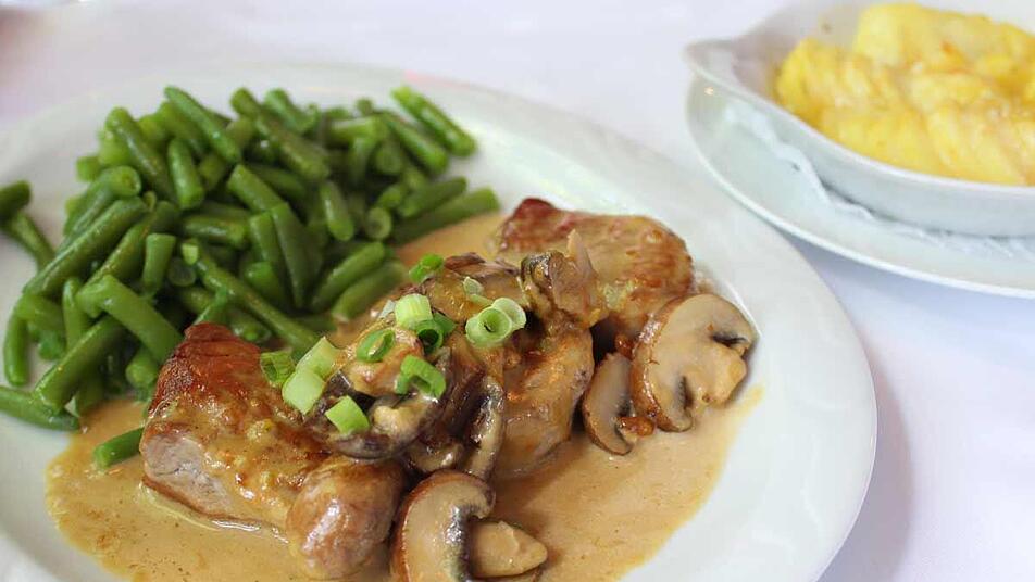 - Nun das Fleisch in die Schwammerlsoße einlegen und 5 Minuten sanft kochen lassen. Nochmal mit Salz und Pfeffer abschmecken und servieren.