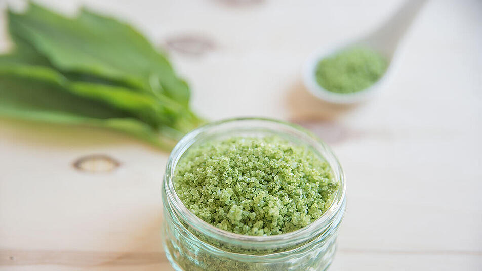 - Das Meersalz in eine große Schüssel geben und den frisch gehackten Bärlauch dazugeben. Alles gut miteinander vermengen, sodass der Bärlauch gleichmäßig im Salz verteilt ist.