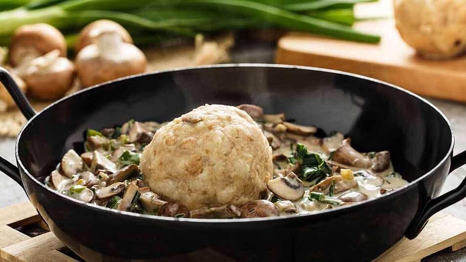 - Mit den Händen Knödel formen und diese in heißem Salzwasser 20 Minuten ziehen lassen.