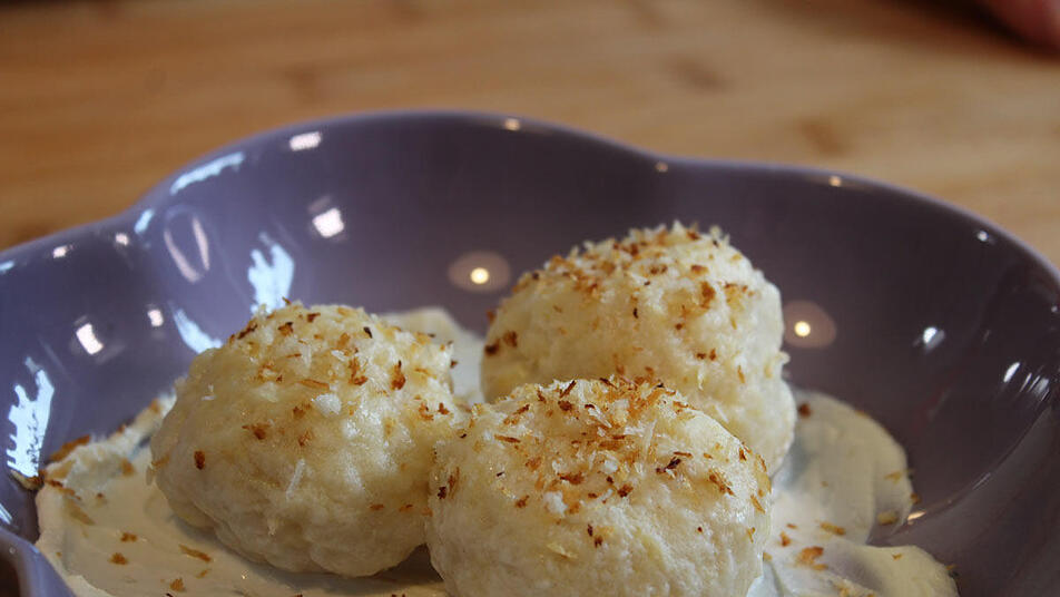 - Nach 15 Minuten die Klöße aus dem Wasser nehmen und nach Belieben anrichten.