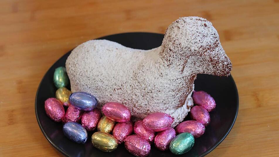 - Das Lamm 10 bis 15 Minuten abkühlen lassen, bevor es aus der Form genommen wird. Anschließens auf einen Teller geben und mit Puderzucker bestreuen.