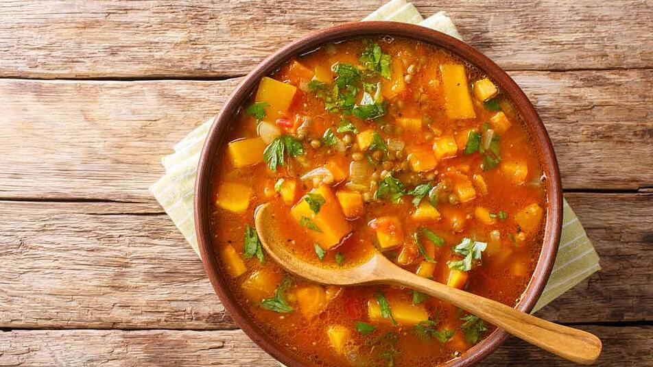 - Zum Schluss hacken wir die Petersilie klein und streuen sie über den Eintopf.