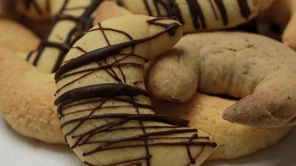 - Die Kipferl vollständig auskühlen lassen und optional mit Schokoladenglasur garnieren. Die Menge reicht für etwa 1 1/2 Bleche.
