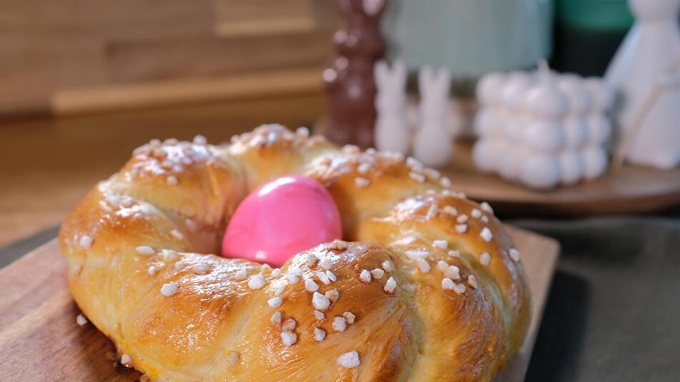 - Sobald die selbstgebackenen Nestchen ausgekühlt sind, können beispielsweise ein gekochtes Ei oder ein Schoko-Osterhase in die Mitte der Kränzchen gesetzt werden.