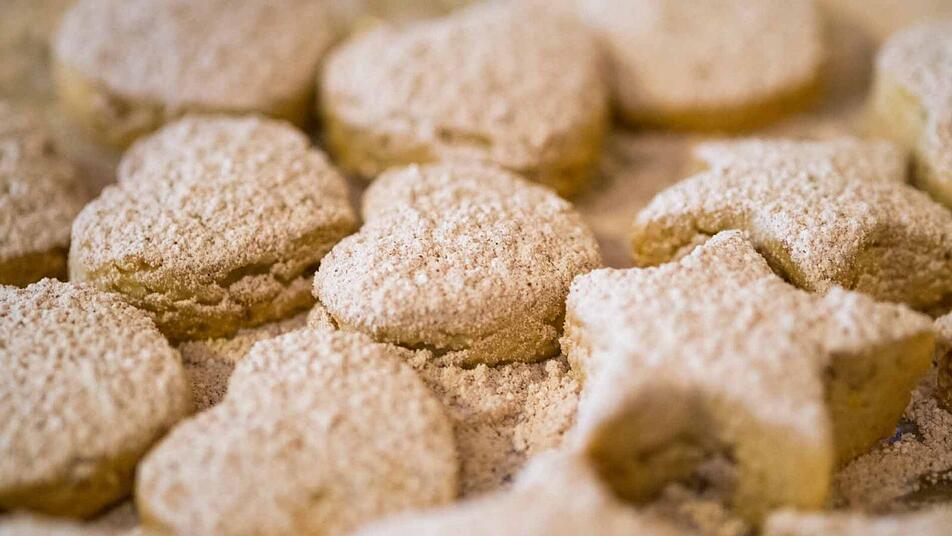 - Mandelmasse zwischen Klarsichtfolie etwa 1 cm dick ausrollen (wenn die Masse sehr weich ist, nochmal kühl stellen oder kurz tiefkühlen) und Sterne ausstechen. Sterne mit der Eischneemasse bestreichen und auf ein mit Backpapier ausgelegtes Backblech setzen.