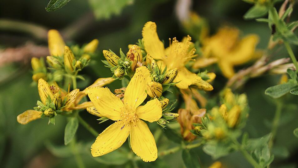 Johanniskraut blüht von Ende Juni bis in den Spätsommer hinein und ist durch seine leuchtend gelben Blüten besonders auffällig. Doch das Kraut besticht nicht nur mit seiner Optik, sondern auch durch seine medizinische Wirkung. Die innerliche Anwendung von Johanniskraut kann beruhigend wirken und die Stimmung aufhellen.