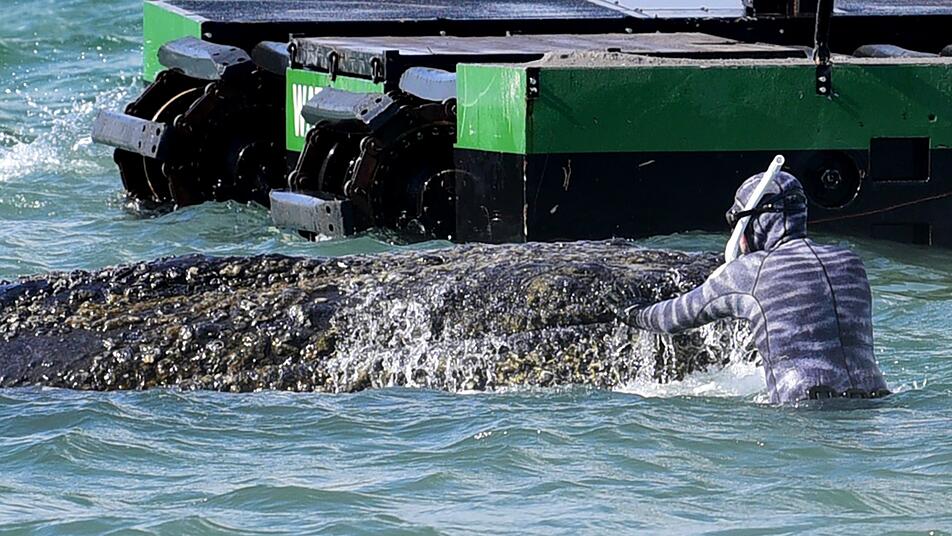 «Mittlerweile vertraut mir der Wal», sagte Lehmann am Donnerstag der Deutschen Presse-Agentur. «Der wird ganz ruhig, wenn man die Hand auflegt.» Dann könnten die Bagger auch direkt am Wal arbeiten. «Weil er sonst, wenn man nicht da ist, dann super nervös wird.» Am Donnerstagnachmittag waren Bagger sowohl seeseitig als auch vom Strand aus dabei, den Bereich um den Wal herum auszubaggern, um dem Tier so Bewegungsfreiheit zu schaffen.