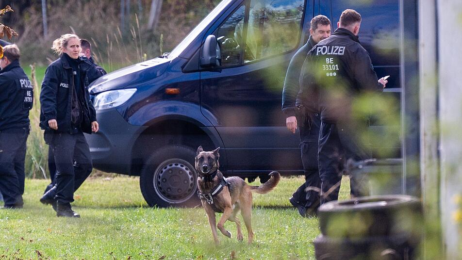 Rund 50 Einsatzkräfte sind an dem Einsatz beteiligt. Das Gelände ist etwa einen halben Hektar groß, wie ein Polizeisprecher sagte. Um die Mittagszeit verließen einige Beamte das Grundstück bereits wieder. Auch die Drohne war am Mittag nicht mehr in der Luft. Die Wiese werde noch weiter abgesucht, hieß es gegen 13 Uhr. Auch der Bagger kam noch zum Einsatz.