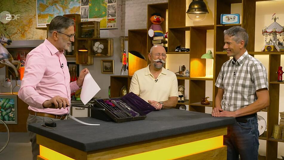 Zu Beginn sah alles noch so unschuldig aus, als der Besitzer sein Objekt ins ZDF-Trödelstudio trug. Doch der erste Eindruck täuschte gewaltig. Schon bald entwickelte sich der vermeintliche Koffer zum perfekten Inventar für einen Gruselfilm. Heute ging es also nicht unter den Hammer - eher unter das Skalpell. Was mochte sich wohl in dem fein ausgekleideten Köfferchen mit Samt verbergen? Horst Lichters Gesichtsausdruck beim Öffnen verriet alles. Ein knappes "Oh oh" entwich ihm, gefolgt von der klaren Erkenntnis: "Das hat nichts mit Kochen zu tun."