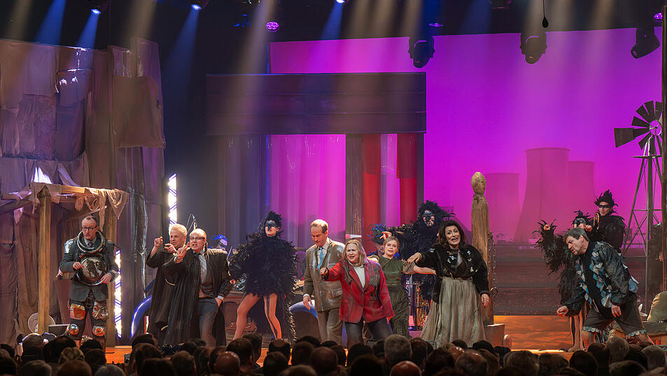 Das Singspiel in Form einer teils apokalyptisch daherkommenden Fantasiewelt zwischen Brandmauer, Drachen und pessimistischen Krähen lieferte so manche Eitelkeit von Söder (als Barde), Merz (in Ritterrüstung aus Kochtöpfen), Aiwanger, Bas und Co und pointierte Probleme bei Energiewende und Artensterben unter einem Brennglas. Den Autoren Stefan Betz und Richard Oehmann gelang es wieder, eine Welt zu kreieren, in der sich Kommunal-, Landes- und Bundespolitik zu einem großen Ganzen vermischten. Nicht nur bei der Tanzeinlage von Friedrich Merz (David Zimmerschied) und Bärbel Bas (Nikola Norgauer) zur fehlenden deutschen Aufbruchsstimmung zeigte sich, dass es eben nicht reicht, "immer im Kreis herum" zulaufen.