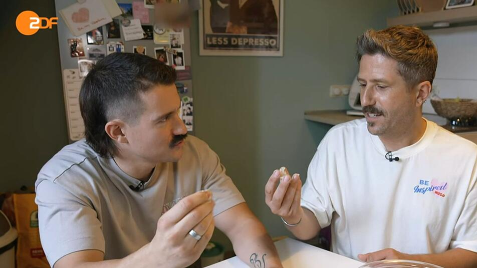 Dass Maurice und Pascal wissen, dass man Seife statt Duschgel verwenden kann, freut die Moderatorin. Ihre Frage, ob sie denn selbst auch auf Duschgel verzichten, verneinen beide jedoch: "Man kennt's ja von Seife. Die wird immer so weich, wenn sie die ganze Zeit im Wasser liegt, und dann hat man da immer so Schmock und Schmiere."