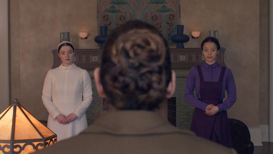 Agnes besucht die Erziehungsschule von Gilead, wo sie zu einer mustergültigen Ehefrau und einer Edelhausfrau erzogen werden soll. Sticken, Törtchen verzieren und Blumengestecke basteln gehören zum Lehrplan der Anstalt, in die bald auch Daisy (Lucy Halliday) aufgenommen wird. Fans von "Der Report der Magd" wird dieser Charakter genauso ein Begriff sein wie die dritte Hauptfigur: Tante Lydia (Ann Dowd), die sadistische Leiterin der Mädchenschule, die nun von einer neuen Seite gezeigt wird. Von welcher, das soll genauso ausgespart bleiben wie eine nähere Ausführung Daisys. Nur so viel: Beide, Lydia und Daisy, und mit ihnen Agnes sind Teil einer Entwicklung, die Gilead in seinen Grundfesten erschüttern wird.