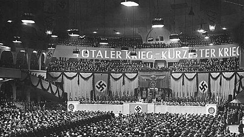 Einen vorläufigen Höhepunkt erreichte die Propaganda im Dritten Reich. Bereits während der Weimarer Republik setzte die NSDAP auf sie. Dabei wurden immer gleiche Schlagworte und prägnante Lösungen für die breite Masse wiederholt. Man beschwor Katastrophen, prangerte die "Schmach von Versailles" sowie das Versagen der demokratischen Parteien während der Wirtschaftskrise von 1923 an und schürte so Ängste und den Hass auf die Republik. Unmittelbar nach der Machtübernahme wurde das Reichsministerium für Volksaufklärung und Propaganda unter der Führung von Joseph Goebbels gegründet. Die Medien wurden unter staatliche Kontrolle gestellt und hatten der nationalsozialistischen Ideologie zu folgen. Es gab keine anderen Informationen als die, welche von der gesteuerten Presse zur Verfügung gestellt wurden. Mithilfe der Propaganda wurde gezielt der Hass auf alle, die anders dachten, geschürt. Insbesondere die jüdische Bevölkerung wurde so als Verbrecher und Untermenschen dargestellt, derer man sich entledigen musste. Auf der anderen Seite wurde Adolf Hitler als Heilsbringer stilisiert und die Soldaten des Ersten Weltkrieges zu Helden erhoben. Im Laufe der Zeit wurde dann die Kriegspropaganda in Gang gesetzt, um die Bevölkerung auf einen Krieg einzustimmen.