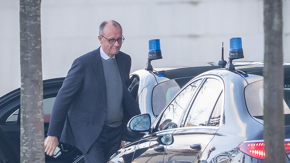 Bundeskanzler Friedrich Merz (CDU) erscheint am Mittag im Kanzleramt. Zu diesem Zeitpunkt sind die US-Delegation und Vertreter der ukrainischen Führung schon in einem nahegelegenen Hotel. Michael Kappeler/dpa